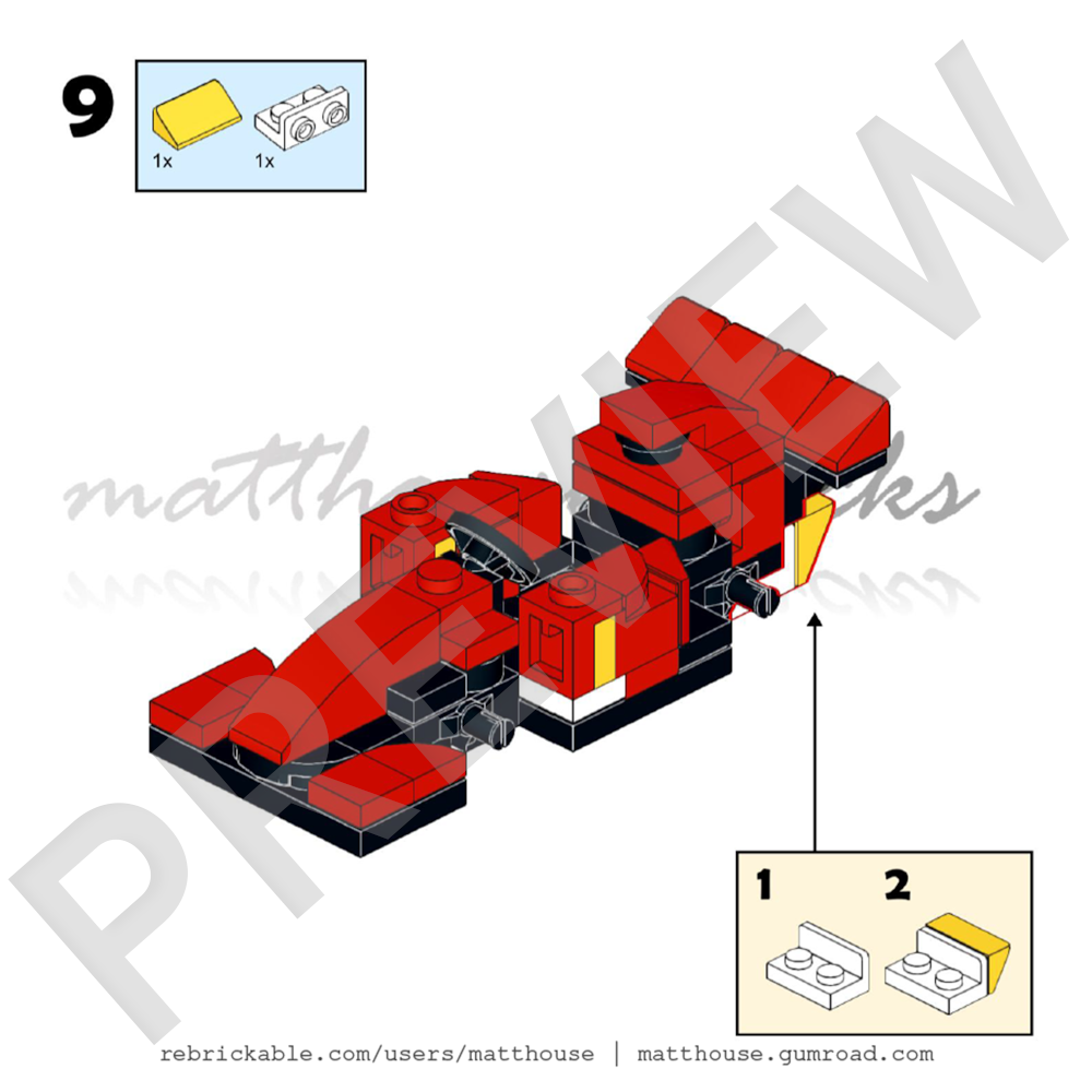 Since 1987, the 2441 Vehicle Base Plate is used in several polybags and sets. Despite the plate is available in only six different and mostly classic colors, it can be the source for creative and diverse designs of 4-stud wide cars and vehicles. For this reason, this build illustrates a classic and iconic racing car from the 21st century in a Red color scheme.